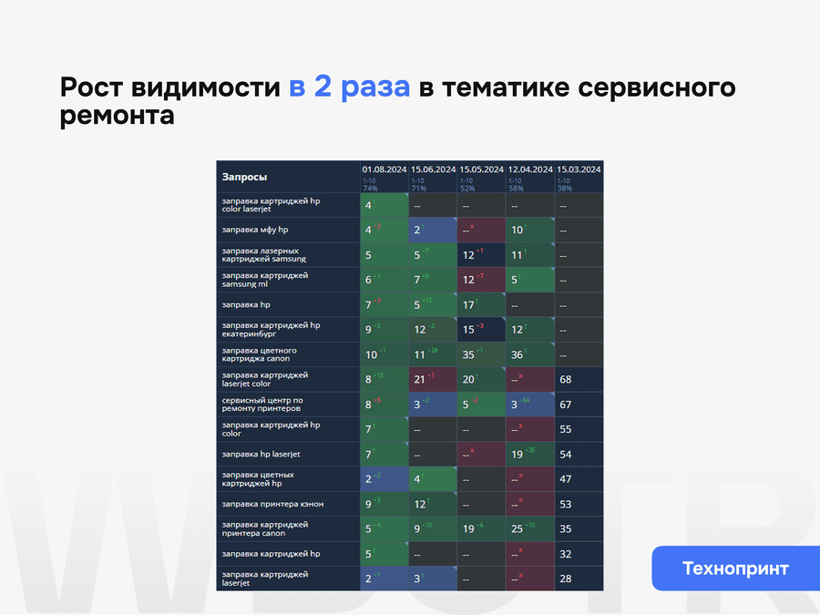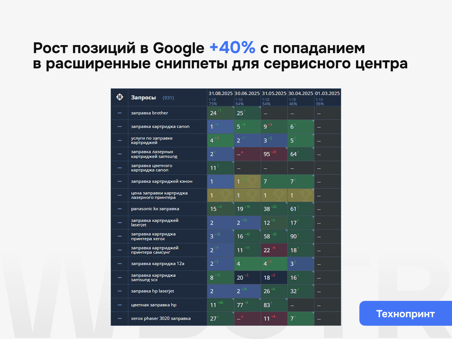 • Срез текущих позиций в сравнении с конкурентами из ТОП