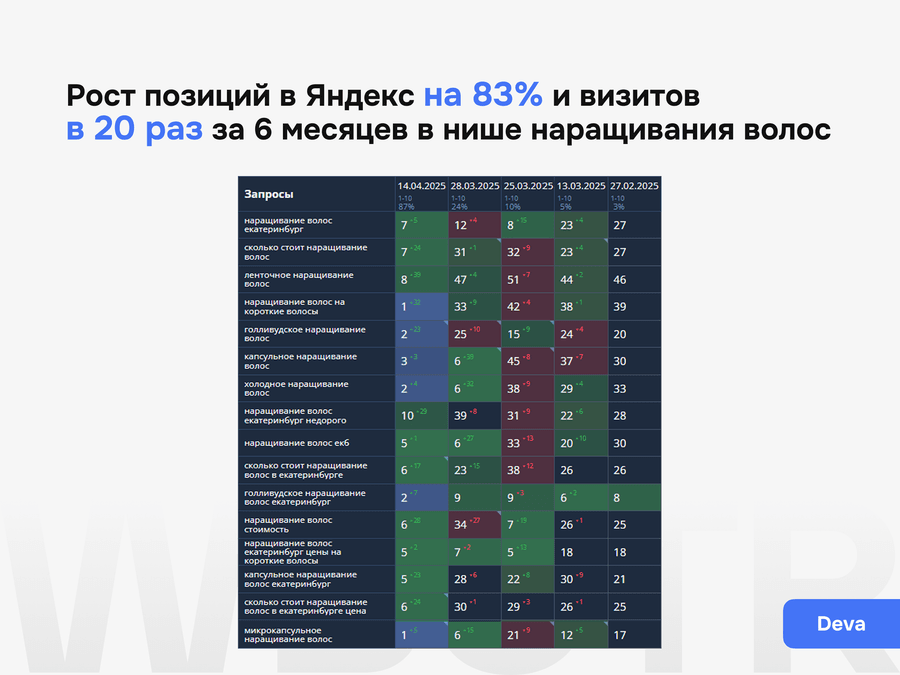 Кейс DEVA: 60 заявок в месяц из органики и 0 ₽ затрат на контекст
